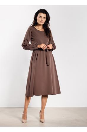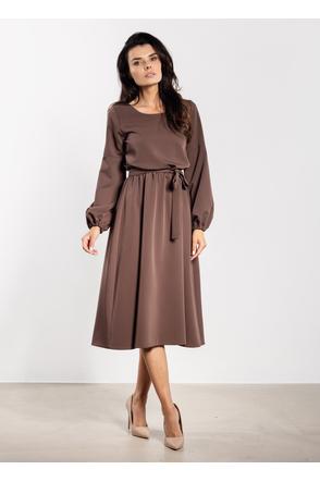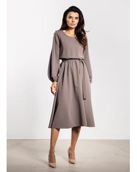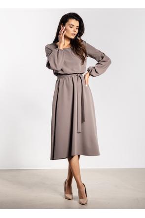 Sukienka midi z paskiem i gumką w talii – elegancki luźny fason