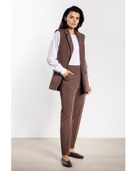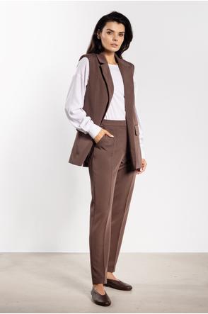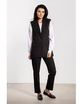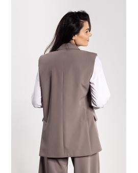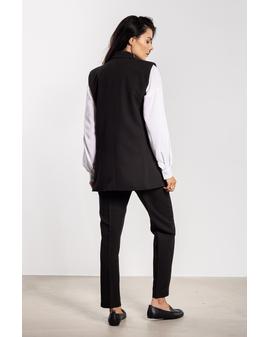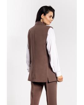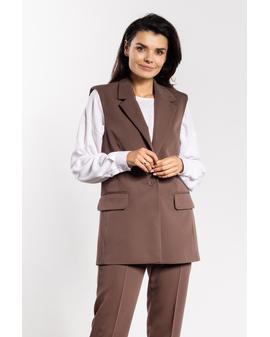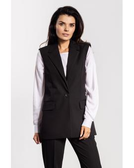 Stylowa kamizelka o prostym, klasycznym kroju to ponadczasowy element garderoby. Jednorzędowe zapięcie na guzik i klapy przy dekolcie podkreślają elegancki charakter, a lekko wydłużona linia wysmukla sylwetkę. Praktyczne kieszonki z patką nadają nowoczesnego akcentu, a uniwersalny fason pozwala zestawiać kamizelkę zarówno ze spodniami, cygaretkami, jak i spódnicą. Idealna do stylizacji biznesowych i casualowych.