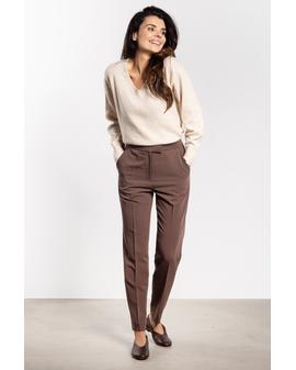 Eleganckie spodnie cygaretki to ponadczasowy element garderoby, idealny do biura i na wieczorne wyjścia. Klasyczny fason z kantem wysmukla nogi i harmonizuje proporcje sylwetki, a wysoki stan podkreśla talię. Długość do kostek nadaje lekkości i nowoczesnego charakteru. Dzięki uniwersalnemu krojowi spodnie pasują zarówno do marynarki i szpilek, jak i do casualowej bluzki czy swetra.