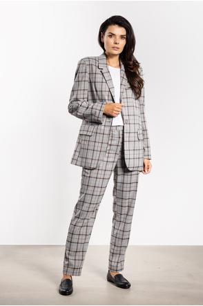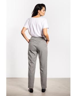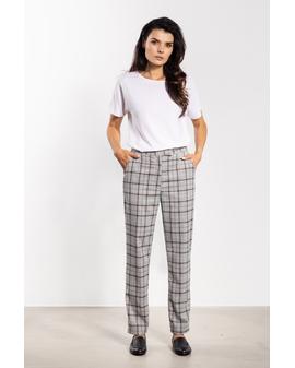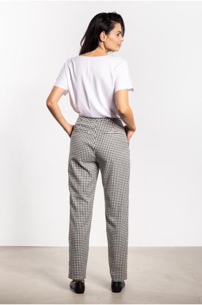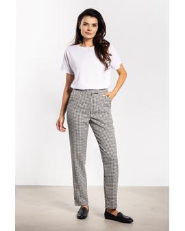 Eleganckie spodnie cygaretki w ponadczasowy wzór kraty łączą styl i wygodę. Prosty, dopasowany fason pięknie układa się na sylwetce, a średni stan zapewnia komfort przez cały dzień. Charakterystyczna kratka dodaje elegancji, dzięki czemu spodnie sprawdzą się zarówno w biurowych, jak i codziennych stylizacjach. Praktyczne kieszenie boczne zwiększają funkcjonalność, a uniwersalny design pozwala zestawiać je z koszulami, swetrami czy marynarkami, tworząc różnorodne, efektowne looki.