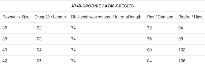 - Krata czarno-biała: 60% poliester, 38% wiskoza, 2% elastan