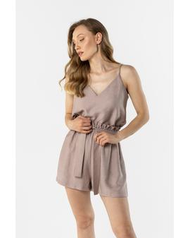 This lightweight top with thin straps is the perfect base for summer outfits. The V-neck subtly accentuates the neck and décolletage, giving the piece a feminine touch. The relaxed fit drapes softly over the body, ensuring comfort, while the smooth fabric with a delicate satin finish adds elegance. This piece works well on its own or paired with a blazer, shirt, or sweater.