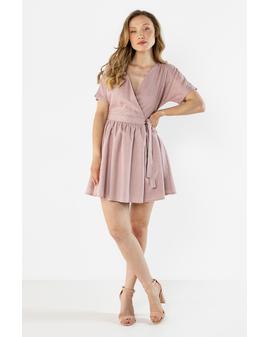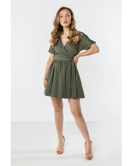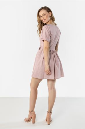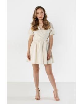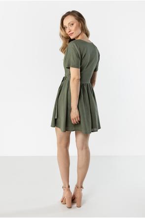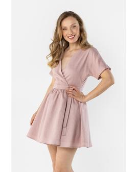 Linen Wrap Mini Dress with Tie at the Waist