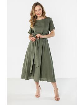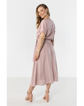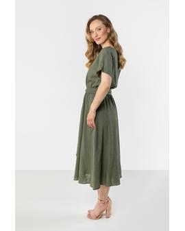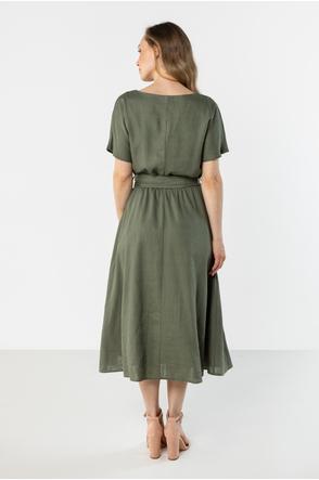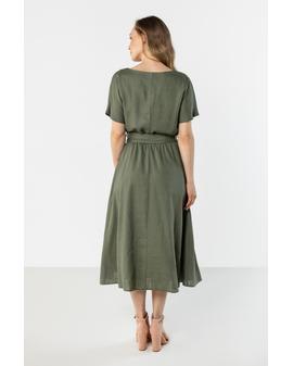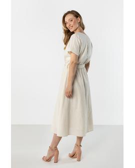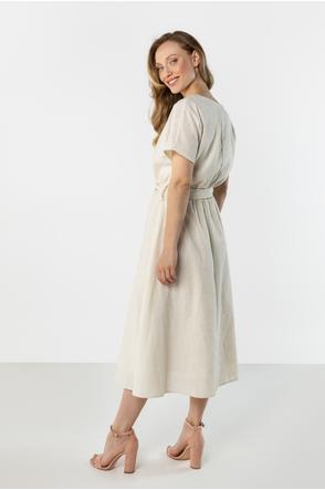 Linen Midi Dress with Tie at the Waist