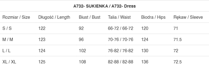 Wymiary w tabelce to wymiary gotowego produktu mierzonego na płasko.