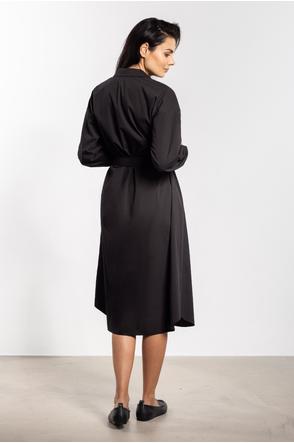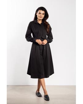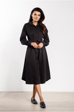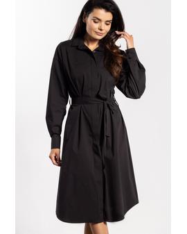 Sukienka koszulowa midi z paskiem i długimi rękawami