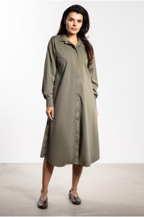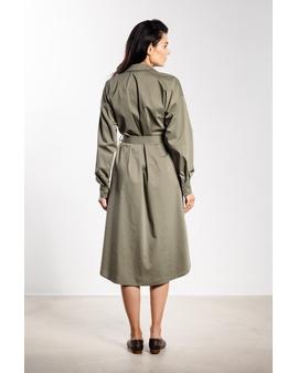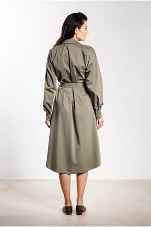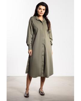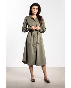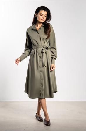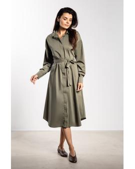 Sukienka koszulowa midi z paskiem i długimi rękawami