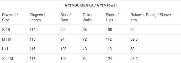 Wymiary w tabelce to wymiary gotowego produktu mierzonego na płasko.