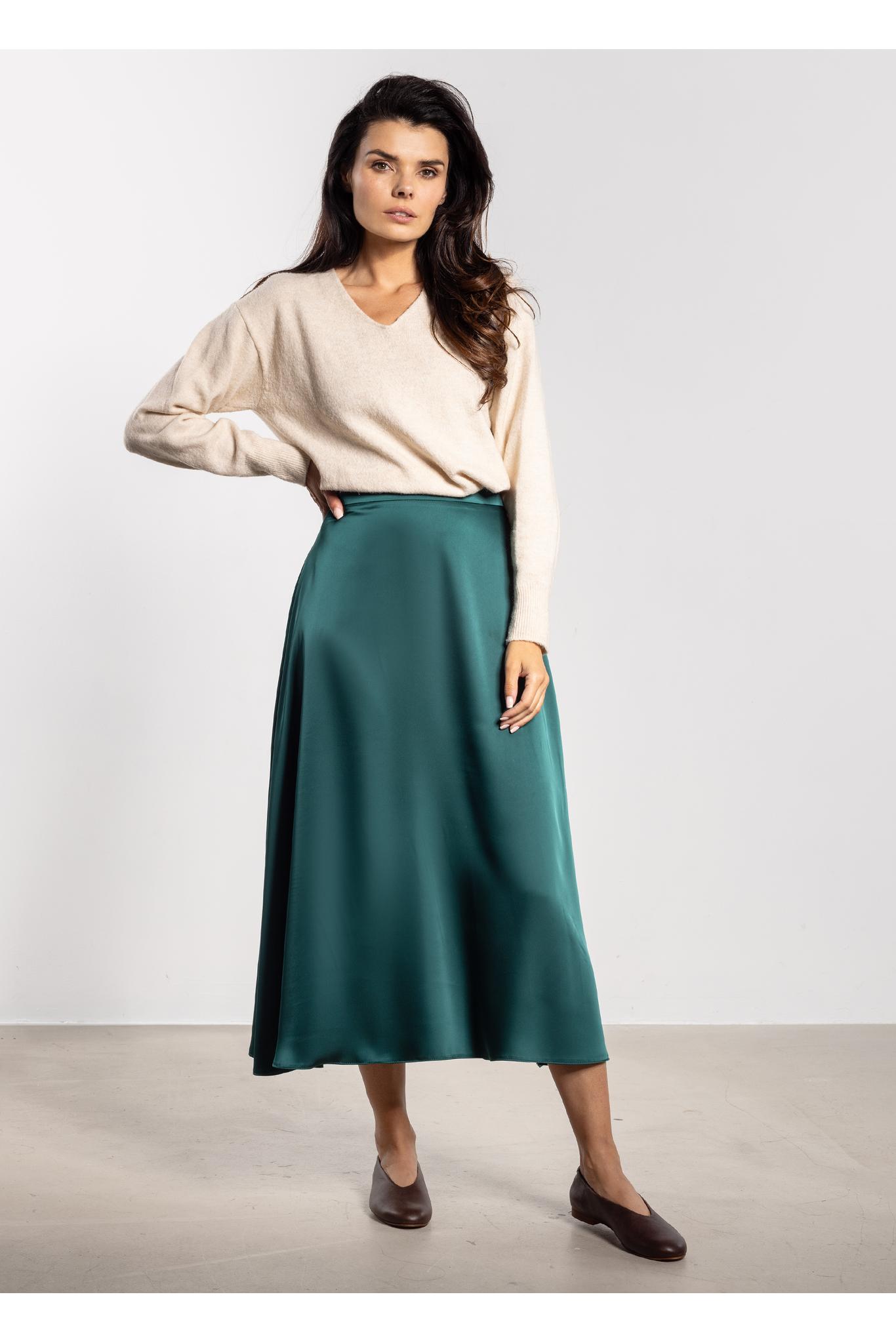 Satynowa spódnica midi z wysokim stanem – elegancki fason