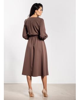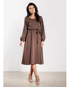 Sukienka midi z paskiem i gumką w talii – elegancki luźny fason