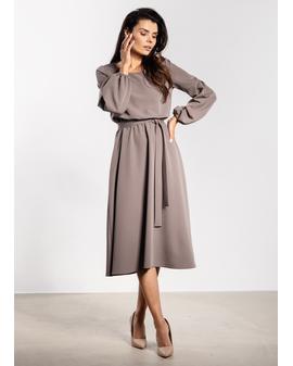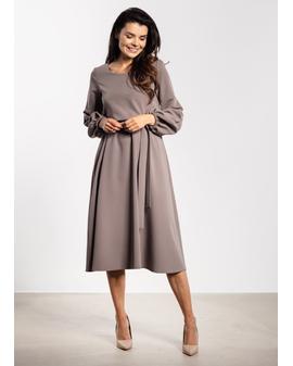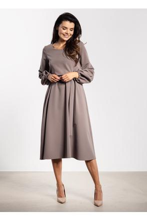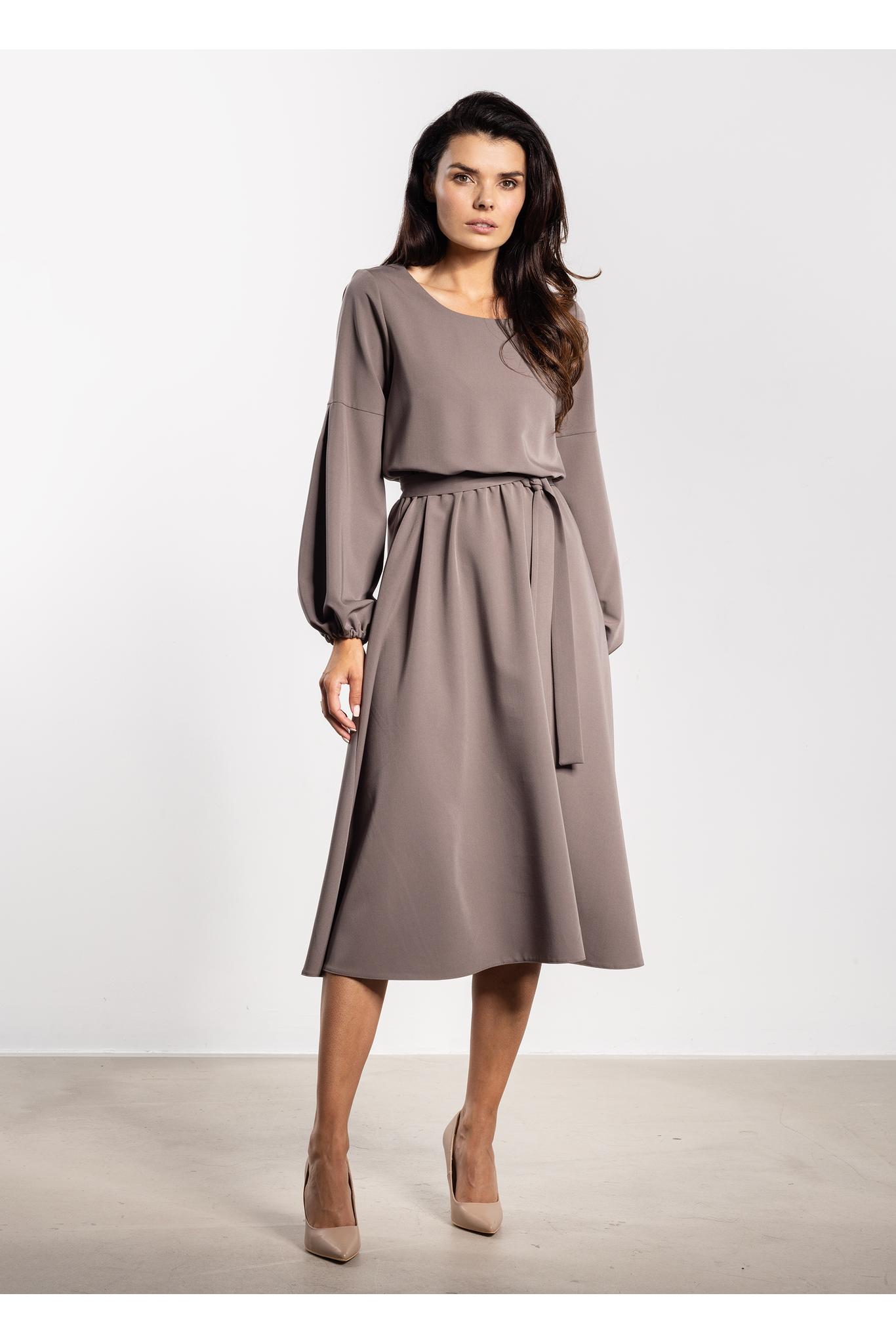 Sukienka midi z paskiem i gumką w talii – elegancki luźny fason