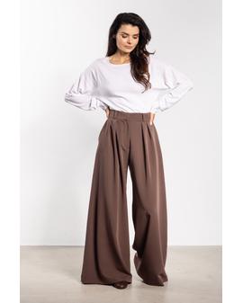 Stylowe spodnie z szerokimi nogawkami łączą wygodę z elegancją. Wysoki stan podkreśla talię i optycznie wydłuża sylwetkę, a rozszerzane nogawki nadają lekkości i nowoczesnego charakteru. Model sprawdzi się zarówno w codziennych stylizacjach, jak i w zestawieniach biurowych czy bardziej formalnych. Świetnie komponuje się z marynarką, koszulą czy swetrem, a praktyczne kieszenie boczne zwiększają funkcjonalność. Ponadczasowy fason pozwala tworzyć wiele modnych kombinacji i gwarantuje uniwersalność.