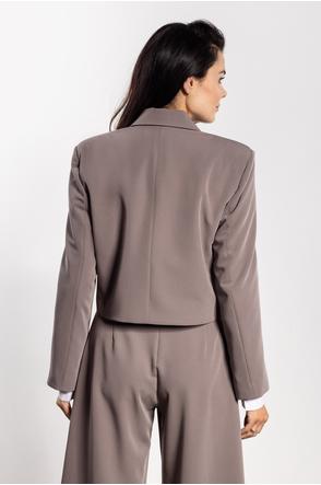 Stylowa marynarka o luźnym kroju łączy klasykę z nowoczesnym charakterem. Krótszy fason nadaje lekkości, a dwurzędowe zapięcie na guziki podkreśla elegancję. Klasyczne klapy i prosta linia ramion sprawiają, że marynarka prezentuje się profesjonalnie i szykownie, jednocześnie zapewniając komfort noszenia. Doskonale komponuje się zarówno z szerokimi spodniami, jak i spódnicą czy sukienką, tworząc uniwersalny i efektowny look na różne okazje.
