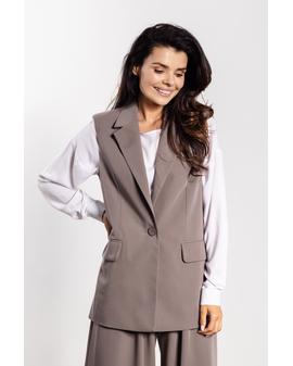 Stylowa kamizelka o prostym, klasycznym kroju to ponadczasowy element garderoby. Jednorzędowe zapięcie na guzik i klapy przy dekolcie podkreślają elegancki charakter, a lekko wydłużona linia wysmukla sylwetkę. Praktyczne kieszonki z patką nadają nowoczesnego akcentu, a uniwersalny fason pozwala zestawiać kamizelkę zarówno ze spodniami, cygaretkami, jak i spódnicą. Idealna do stylizacji biznesowych i casualowych.