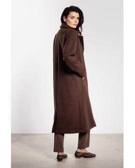 Elegancki płaszcz damski o prostym, minimalistycznym fasonie to must-have w jesienno-zimowej garderobie. Długość midi i klasyczne klapy nadają modelowi ponadczasowego charakteru, a dołączony pasek pozwala podkreślić talię lub nosić płaszcz w wersji luźnej, dla bardziej casualowego efektu. Prosty krój zapewnia komfort i swobodę ruchów, a praktyczne kieszenie boczne dodają funkcjonalności. Model sprawdzi się zarówno w stylizacjach do pracy, jak i na specjalne okazje, łącząc elegancję z uniwersalnością.