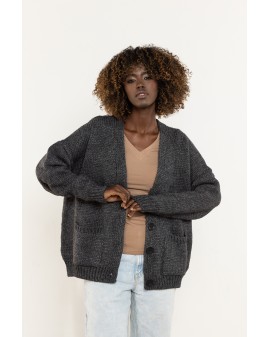 Propozycja dla kobiet ceniących prostotę, miękkość i funkcjonalność. Uszyty w Polsce z dbałością o detale. Basicowy krój z dekoltem V, zapięciem na guziki i kieszeniami płynnie przechodzi między casualem a smart casualem. Miękka dzianina z dodatkiem wełny otula i grzeje w sezonie jesień–zima.