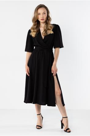Kopertowa sukienka midi z wiązaniem w talii i dekoltem V