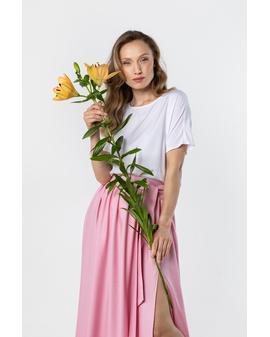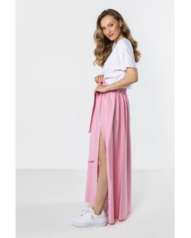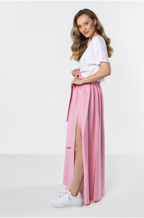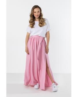 Długa spódnica z rozcięciem i wiązaniem w talii