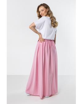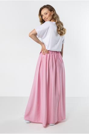 Zwiewna spódnica maxi o kobiecym fasonie, która łączy wygodę i styl. Wysoki stan podkreśla talię, a szerokie wiązanie dodaje eleganckiego charakteru. Rozcięcie z przodu subtelnie eksponuje nogę i nadaje lekkości, a elastyczna gumka z tyłu pasa zapewnia komfortowe dopasowanie. Model idealny na co dzień i na letnie stylizacje.