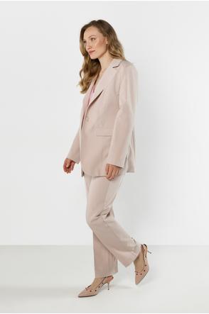 Klasyczna marynarka o eleganckim kroju to ponadczasowy element garderoby, który świetnie dopełnia zarówno formalne, jak i bardziej nowoczesne stylizacje. Jednorzędowy fason z klapami pięknie układa się na sylwetce i nadaje całości szyku. Delikatnie taliowany krój podkreśla kobiecą linię, a gładki materiał zapewnia estetyczne, schludne wykończenie. Model doskonale prezentuje się w komplecie ze spodniami, ale równie dobrze sprawdzi się w zestawieniu z jeansami czy sukienką.