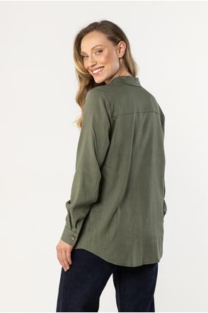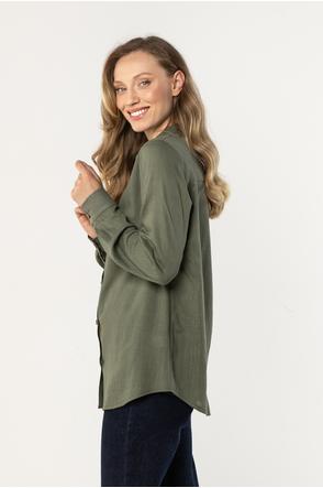 Lniana koszula z kołnierzykiem i długim rękawem