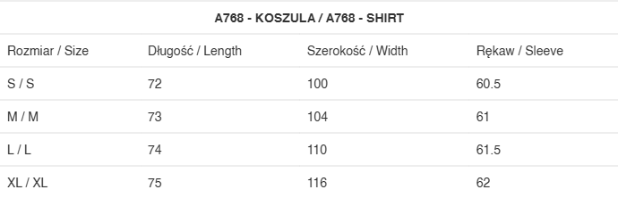 Wymiary w tabelce to wymiary gotowego produktu mierzonego na płasko.