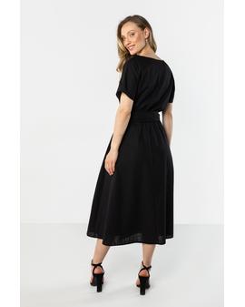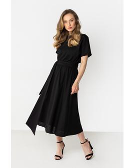 Lniana sukienka midi z wiązaniem w talii