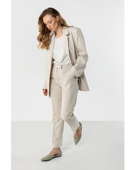 Naturalna lniana tkanina zapewnia przewiewność i komfort noszenia, dlatego model świetnie sprawdzi się zarówno na co dzień, jak i w bardziej eleganckich stylizacjach – z koszulą, topem czy marynarką.
