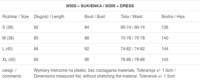 Wymiary w tabelce to wymiary gotowego produktu mierzonego na płasko.